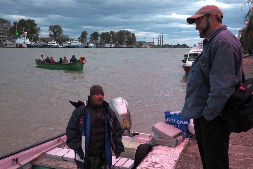 Am petrecut o oră pe șalupa lui descoperită, ca niște pinguini semi-înghețați, pe o ploaie rece și un vânt tăios. Apoi ne-am plimbat câteva ore prin Sulina, unde a devenit, de bunăvoie, ghid.