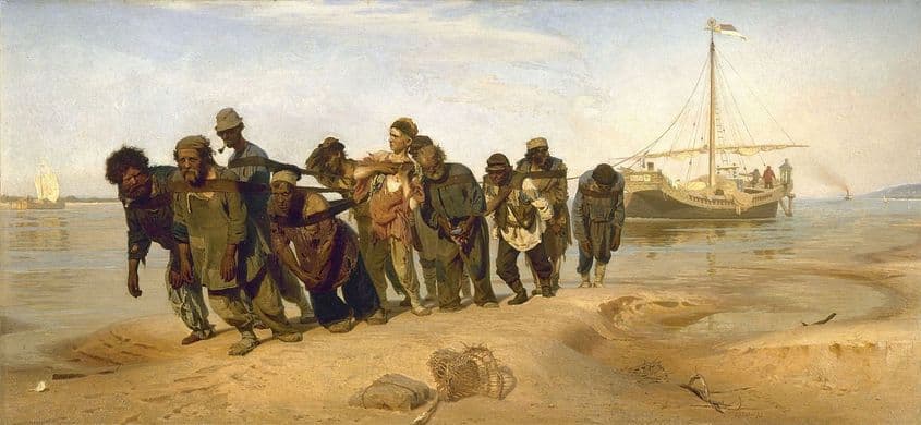 Sau doamna-ghid de la farul vechi, care mi-a povestit, printre multe altele, despre Baba Rada cea mereu bucuroasă, o femeie mare cât ușa, care avea 14 copii și care, pe o platformă de ciment, trăgea navele pe canal cu funia pe umăr, exact ca în celebra pictură a lui Ilia Repin „Edecarii de pe Volga” (foto).