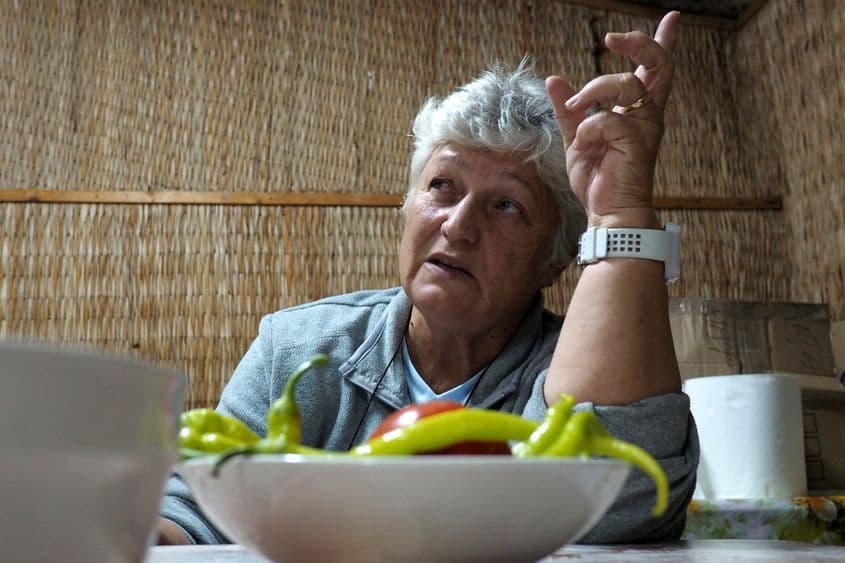 L-am întrebat cu cine îmi recomandă să mai stau de vorbă. „Mătușa mea, sora tatei, stă mai sus pe stradă, înainte de fosta unitate militară. O să-ți placă de ea. E o femeie simpatică și povestitoare”.
