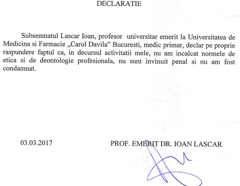 Contactat de PressOne, Ioan Lascăr a refuzat să răspundă de ce a semnat declarația reprodusă mai sus. După ce a auzit întrebarea, a spus că se află într-o ședință și a închis telefonul.