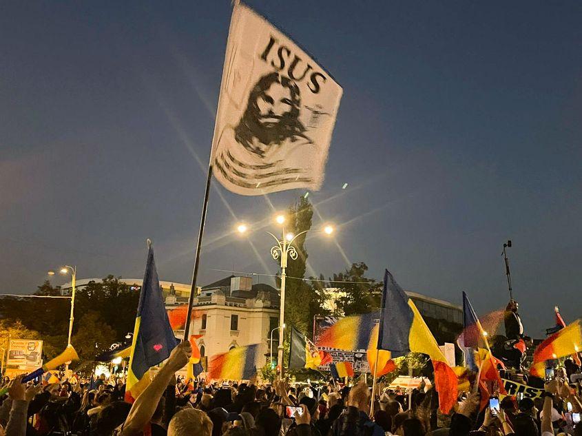 "Auuuu, auuuuu, auuu: Jos Cîțuuuu!", urlă ca o galerie de fotbal oamenii adunați la Piața Universității, la protestul AUR. „Jos marele capital! Scoateți banii din bănci! Jos multinaționalele!”, urlă oamenii adunați în Piața Victoriei, la protestul organizat de Starea de Libertate și periferic Frăția Ortodoxă. „Ne omoară părinții în spitale! Revoluție!!!”, urlă în același timp și Diana Șoșoacă, senatoarea care a organizat la rându-i un protest în fața Guvernului României.