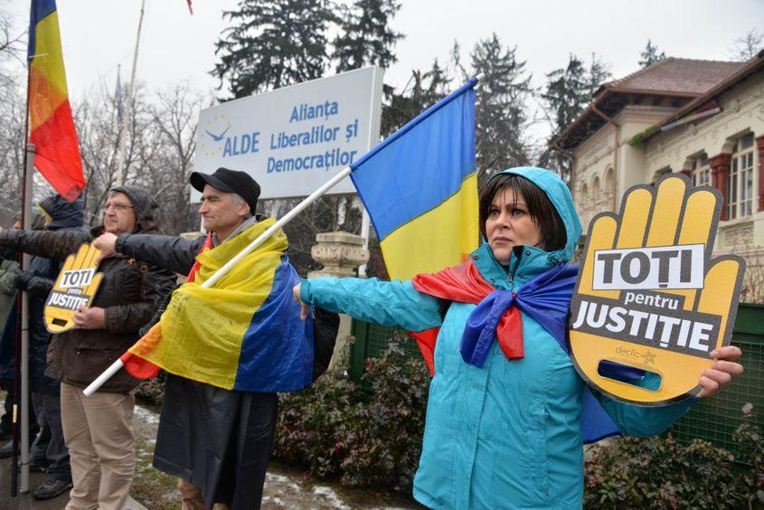 Ora 13.10. Marșul Speranței ajunge la Arcul de Triumf. Protestatarii se aliniază de-a lungul gardului de la sediul ALDE, pentru o fotografie-simbol în care toţi arată cu degetul mare în jos.