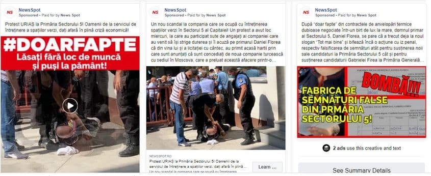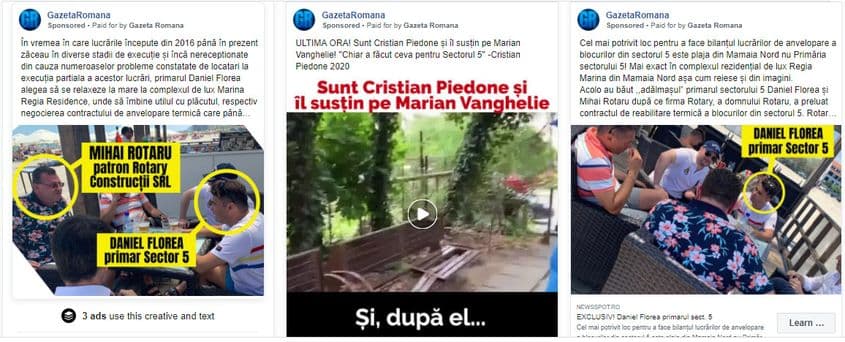 Un alt exemplu de acest tip sunt paginile Gazeta Română și News Spot, care plătesc masiv publicitate pentru a răspândi pe wall-urile utilizatorilor din București materiale defavorabile actualului primar al Sectorului 5 din București, Daniel Florea.