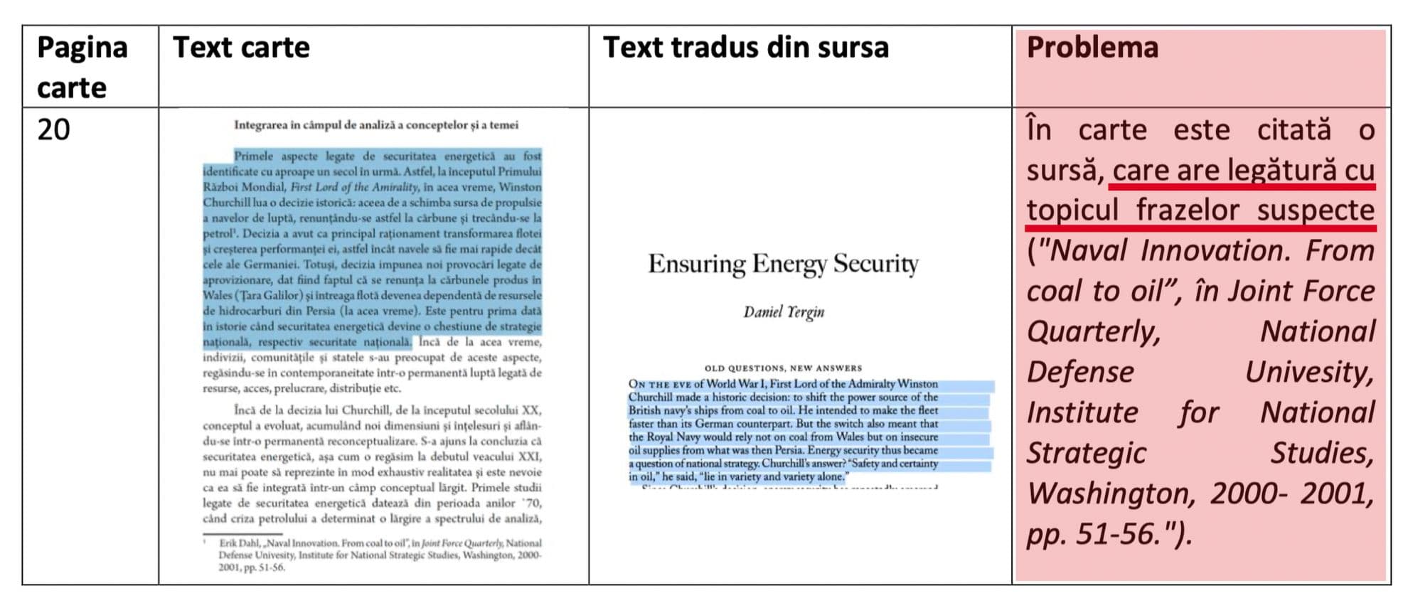 CNE afirmă că „o parte din textul din pagina 20 este preluat prin traducere din altă sursă necitată, și anume Tergin, 2006”, însă îngroapă această constatare sub o observație colaterală: „În carte este citată o sursă care are legătură cu topicul frazelor suspecte [...]”.