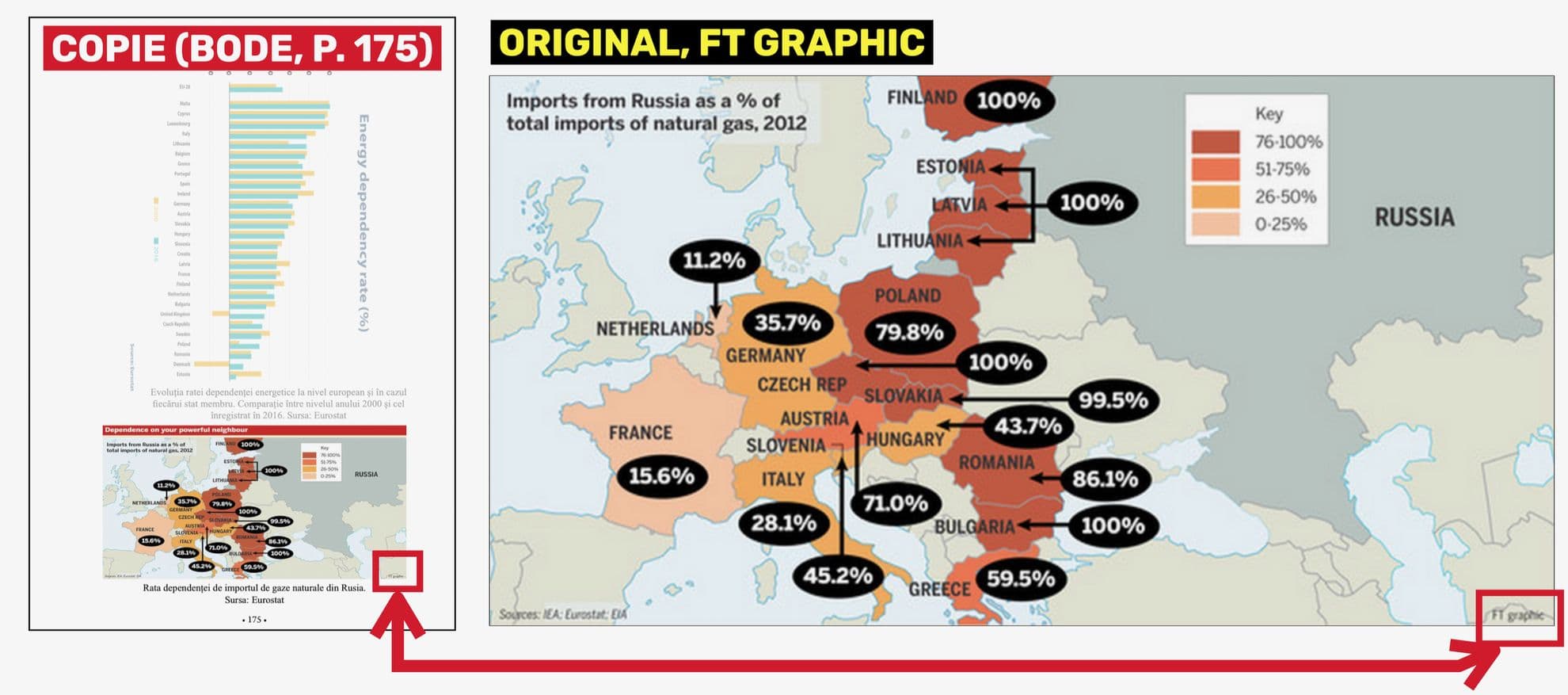 Toate aceste informații apar, de altfel, chiar pe imaginea plagiată de Bode: în colțul din dreapta jos este vizibilă mențiunea „FT graphic”, iar în colțul din stânga jos sunt vizibile sursele datelor folosite de Financial Times.