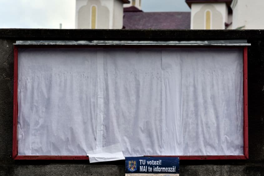 Pe când am ajuns, tocmai se limpezea cerul – așa că panourile albe pentru afișajul electoral erau murate.