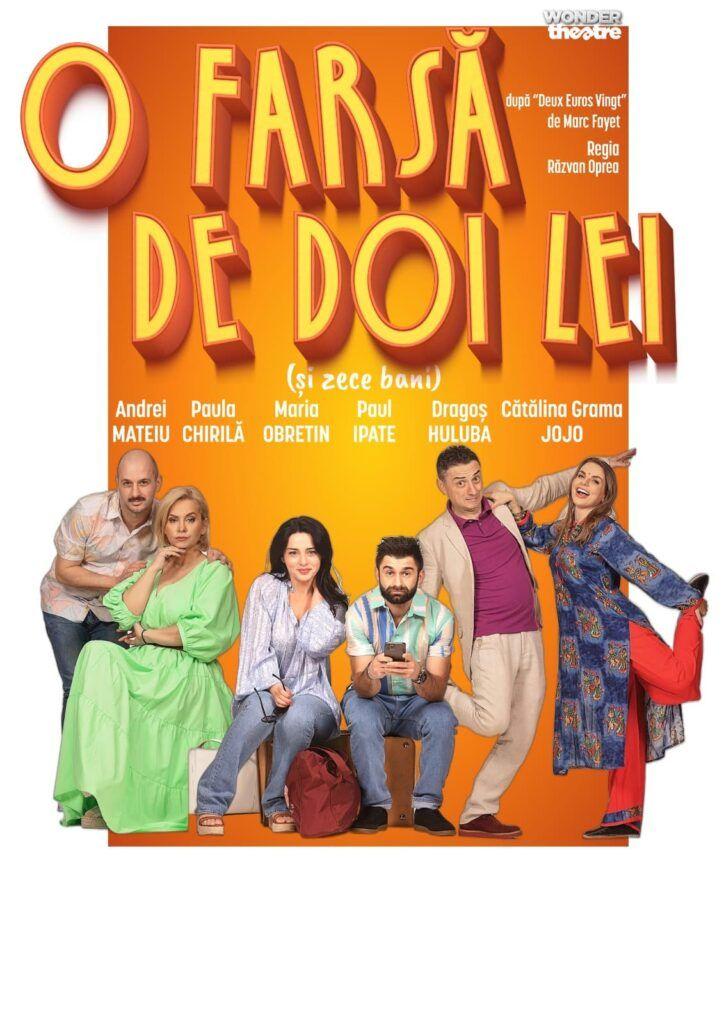 Duminică, de la 19:00, se joacă O farsă de doi lei (și zece bani) la Casa de Cultură a Studenților (100 de lei), cu Paula Chirilă, Paul Ipate, Andrei Mateiu și alții.