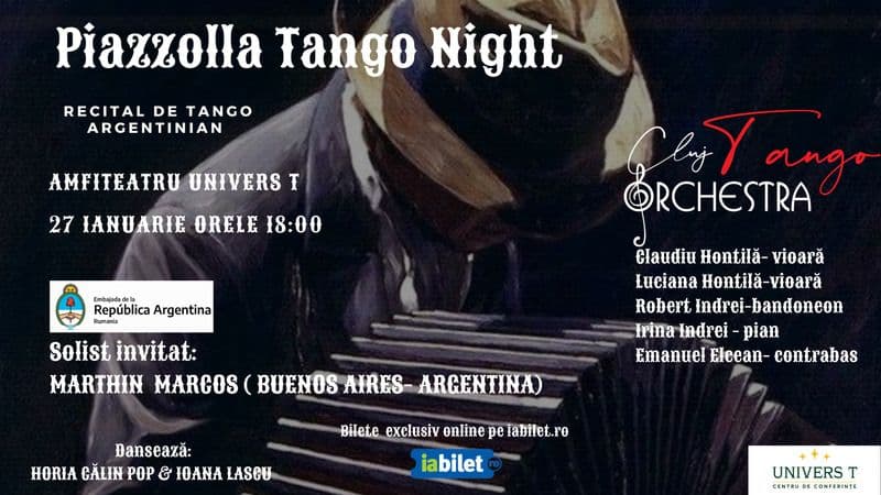 Sâmbătă, de la 18:00, are loc Recital de tango argentinian, la Hotel Univer T (75 de lei). Tot sâmbătă, de la 19:00, Azur & Nelu Vlad au concert la Euphoria Music Hall (75 de lei), iar mai târziu, de la 22:00, poți merge la karaoke la Bardot (20 - 30 de lei).