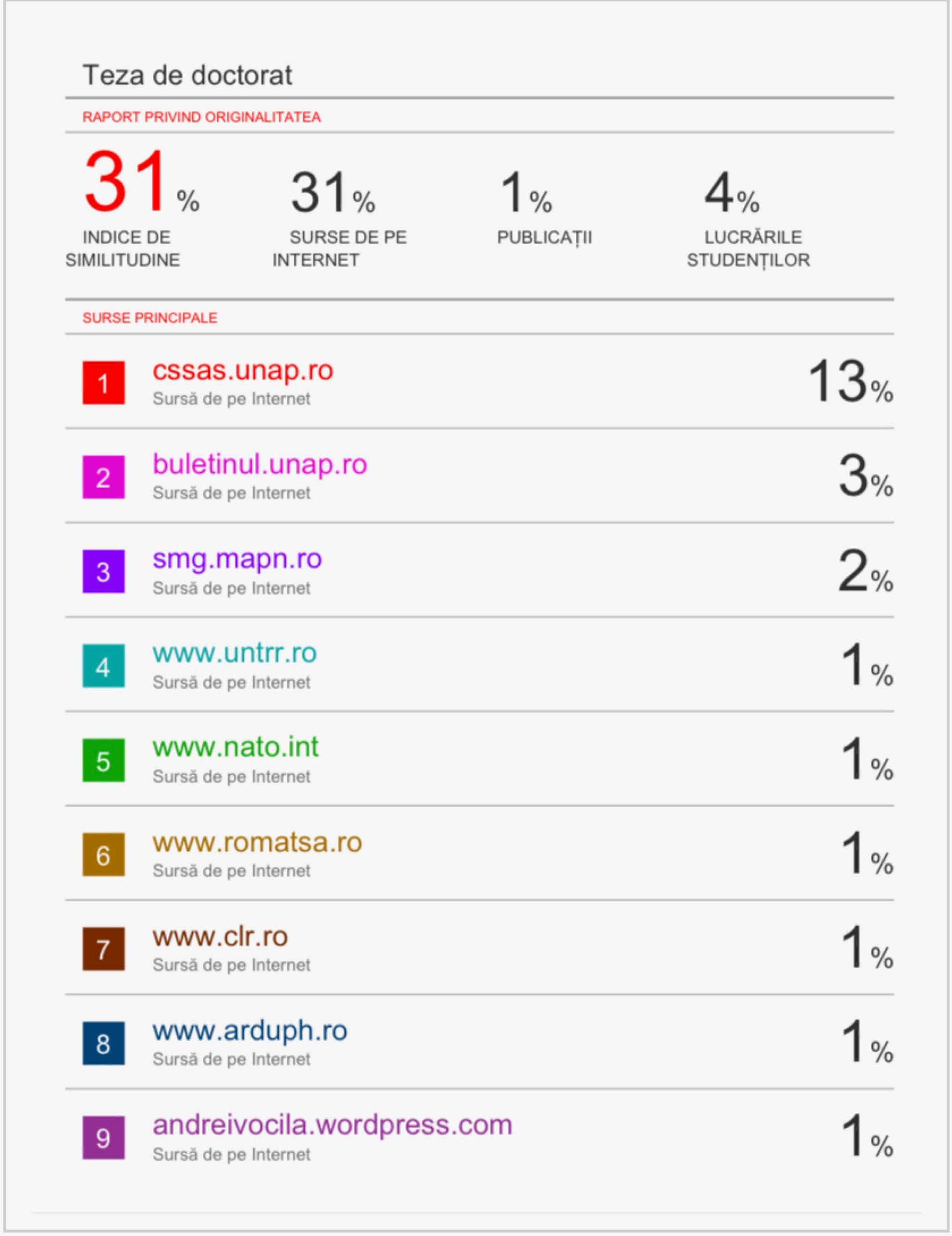 31% este procentul de similitudine indicat de raportul de verificare cu TurnitIn.