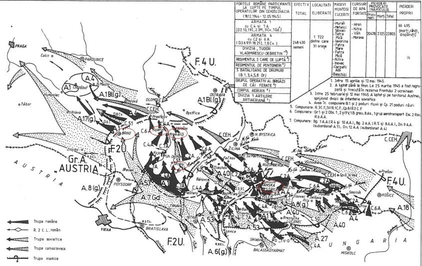 † Armatele române au luptat în Cehoslovacia din 8 decembrie 1944 până în mai 1945.