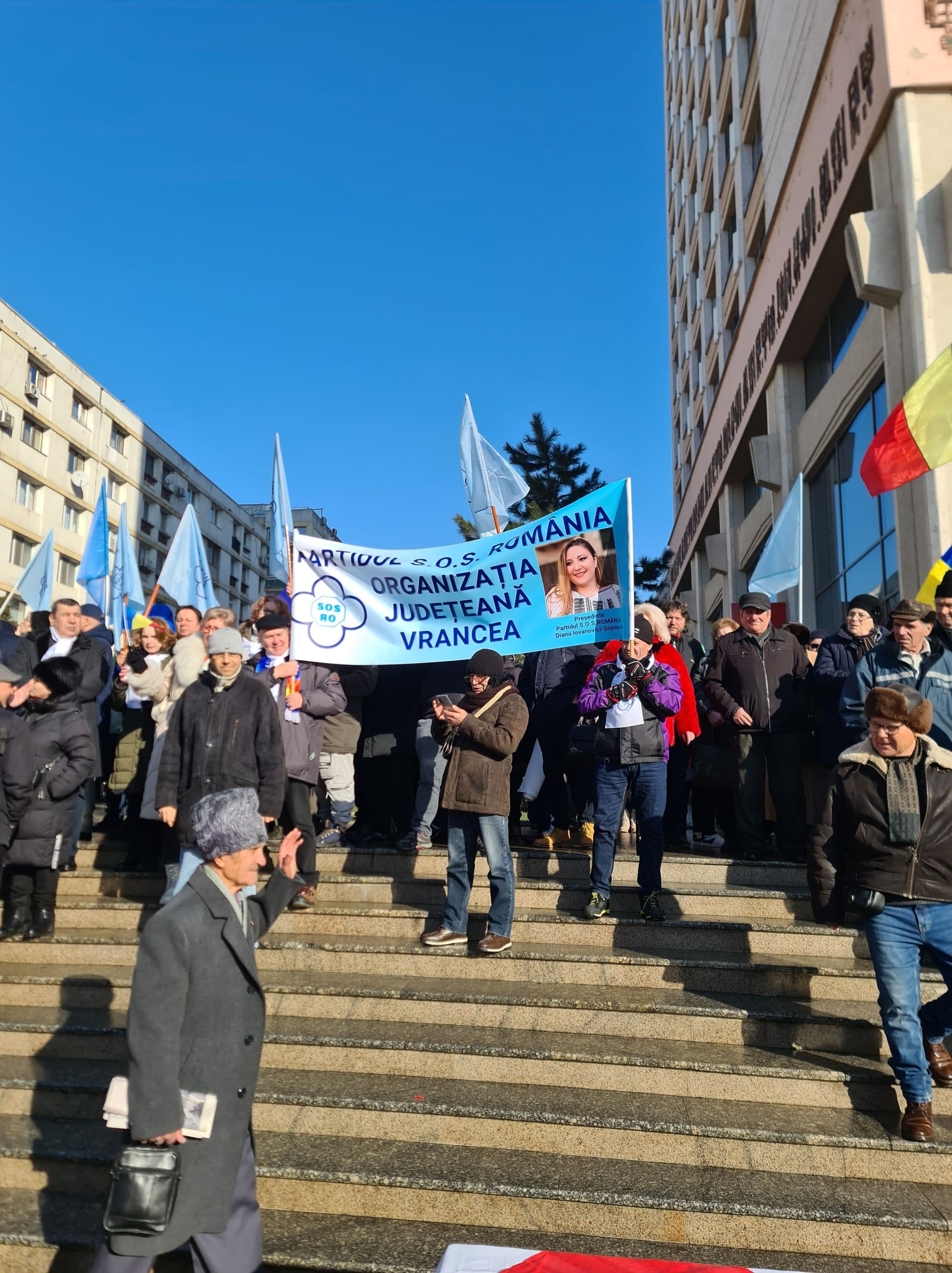 Partidele politice nu au confiscat doar manifestările dedicate Zilei Unirii Principatelor, ci s-au folosit și de drapelul național pentru a transmite mesaje politice. Așa a apărut în Piața Unirii tricolorul cu însemnele AUR, steagul dacic sau drapelul cu poza Dianei Șoșoacă.