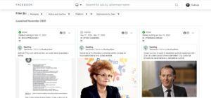 Unele din paginile de Facebook care corespund site-urilor au fost șterse, însă Facebook Ad Library păstrează în baza sa de date toate plățile efectuate pentru publicitatea politică.