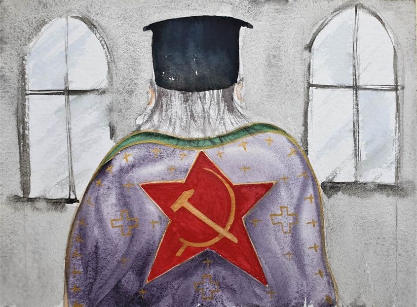 Drept urmare, un anume preot își brodează pe robă secera și ciocanul. Altul își roagă enoriașii să renunțe la apelativul Sfinția Sa și să-l numească simplu, Tovarășul Episcop. Iar un altul ține prelegeri teologice, în care explică cele trei revelații ale lui Dumnezeu: prin Moise, Hristos și Stalin.