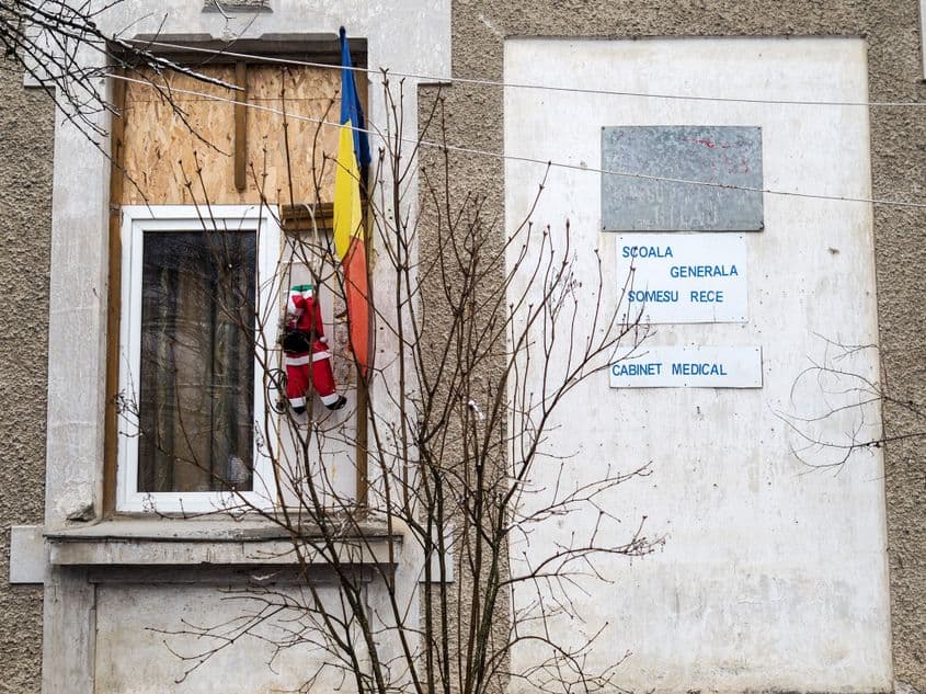 Ce este european, în afară de steagul UE arborat la intrare, într-o școală ce stă să se dărâme?