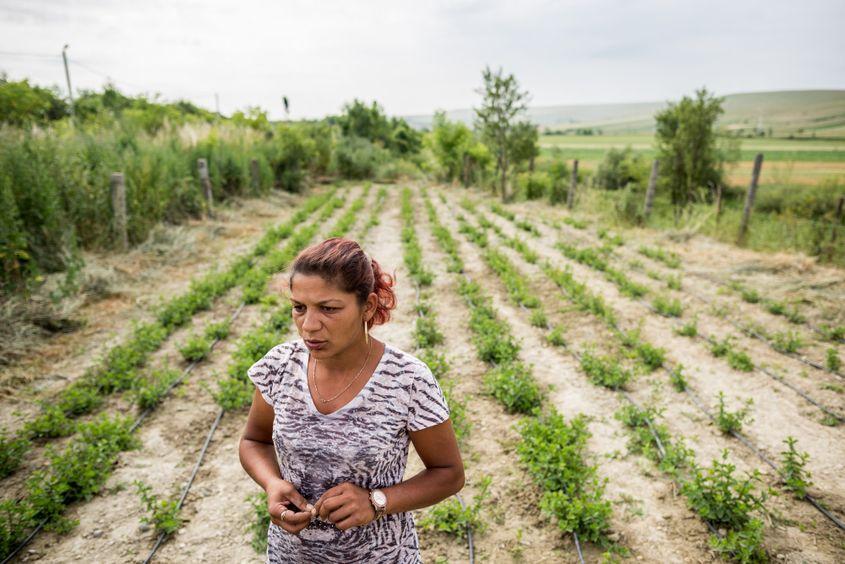 Femeia cultivă și ea mentă cu ajutorul asociației conduse de Cătălin Pah.