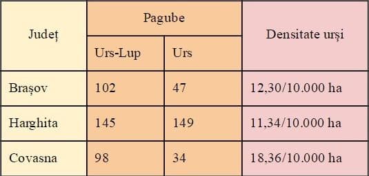 Interesant este și faptul că, dacă punem în balanță densitatea urşilor cu numărul estimat de pagube în cele trei județe, reiese că cele mai puține daune s-au înregistrat (ar fi urmat să se înregistreze) în județul cu cea mai mare densitate a populației de urs brun: Covasna.