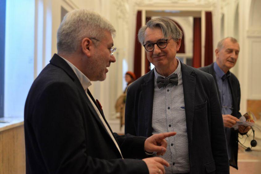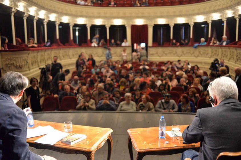 Evgheni Vodolazkin, în dialog cu Horia-Roman Patapievici, la Teatrul Odeon din București. Fotografii: Lucian Muntean