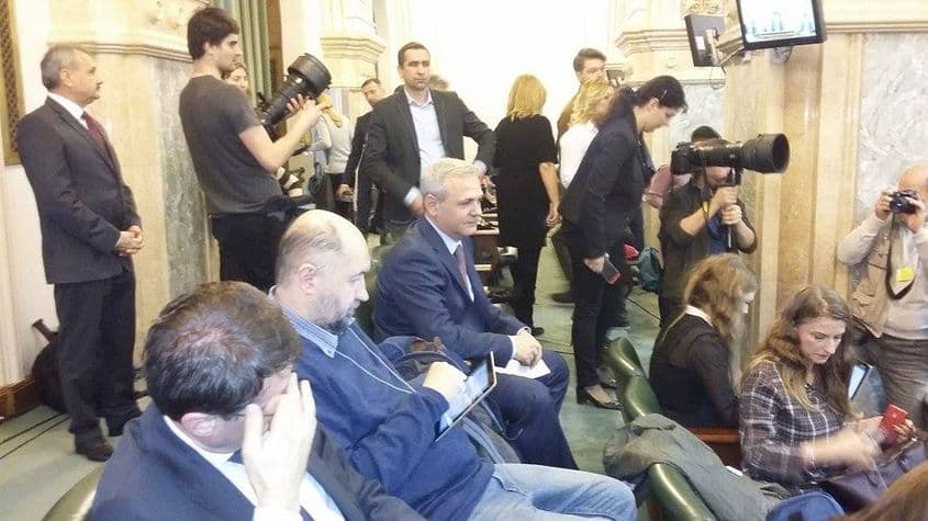 În balconul rezervat presei, l-am găsit – surpriză! – chiar pe președintele PSD, Liviu Dragnea. El s-a abținut însă de la comentarii.