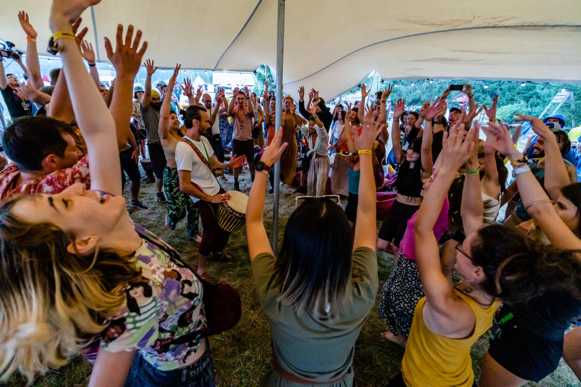 „Am venit prima dată anul trecut și am zis gata, nu mai ratez nicio ediție”, am prins într-o frântură de conversație, cu câteva momente înainte să înceapă un jam session organizat de Cercul Întreg, o comunitate din Cluj dedicată educației prin ritm, dans și joc. După mai puțin de zece minute, toți cei adunați în jurul scenei delimitate de baloți de paie participau la ceea cei de la Cercul Întreg numesc „muzică silvatică” - pe care o „lași să se întâmple” și în care oricine poate interveni.