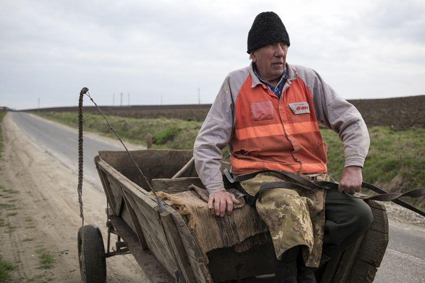 Ocolim mlaștina și revenim la șosea. Ne salută nea Vasile (75 de ani), care mână încetișor spre casă.