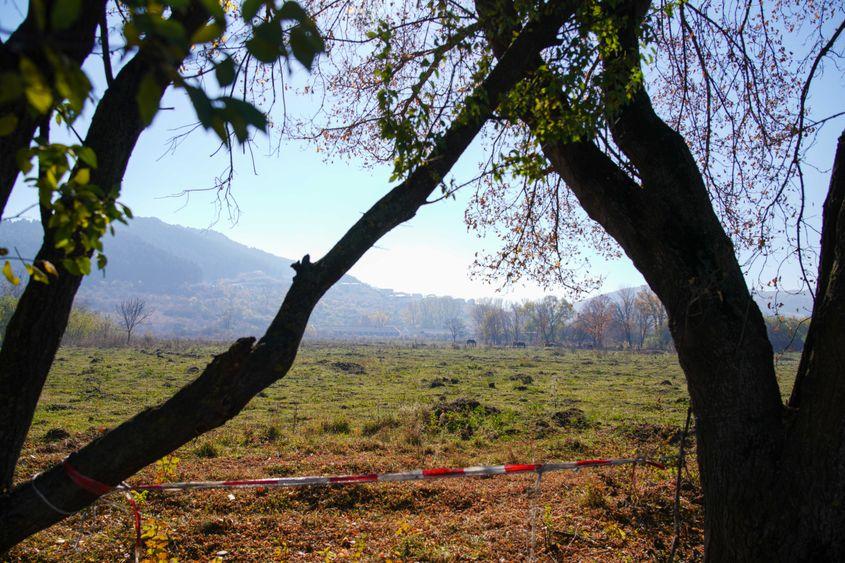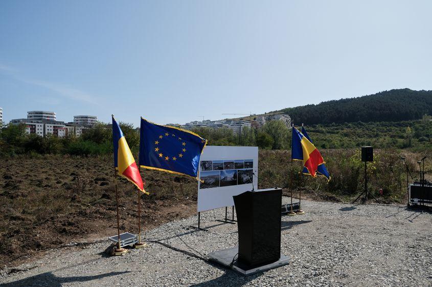 27 octombrie 2021. A trecut mai bine de un de la vizita lui Ludovic Orban și Nelu Tătaru pe amplasamentul Viitorului. La intrarea pe terenul pe care fusese un vechi depozit de muniție și pe care Armata l-a cedat ca să se ridice un spital, se mai văd încă urmele trecerii politicienilor de prim rang. E o fâșie pe care vegetația n-a mai crescut, exact „coridorul” curățat și pregătit pentru vizita oficialităților.