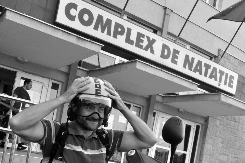 Aplecat, Răzvan încearcă felurite metode a-şi înfunda casca de motocicletă în dulăpiorul îngust cu numărul 38, în timp ce mâna mea caută febril în buzunarul greşit al rucsacului după aparatul foto. Între timp, grupul statuar format din cei doi uscători de păr se destramă şi tensiunea din vestiarul bazinului se risipeşte ca un abur de duş ce înfoaie perdeaua şi apoi se lipeşte, obosit și ud, de gresia crem.