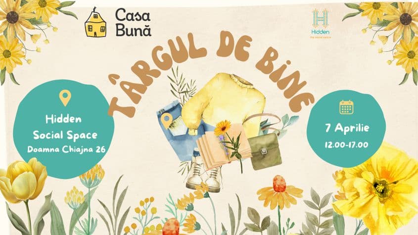 - Duminică poți merge la Târgul de Bine de la Hidden Social Space (Doamna Chiajna 26), între 12:00 și 17:00, unde „fondurile obținute vor fi folosite pentru a cumpăra bucurii pentru copiii de la Casa Bună.”