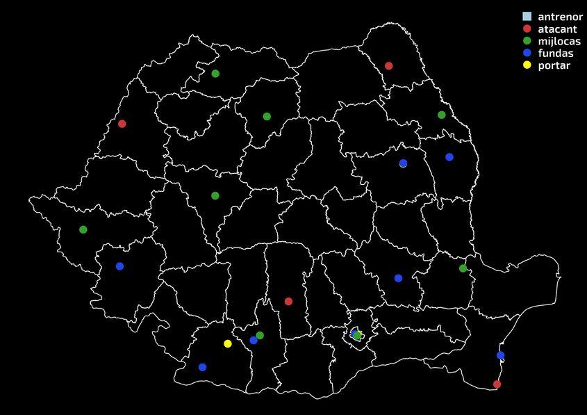 Au parcurs apoi loturile de jucători selecționați și i-au așezat pe hartă, în funcție de posturi și de locul nașterii.