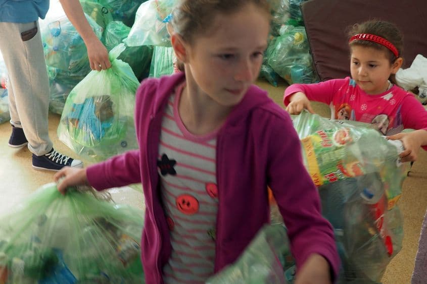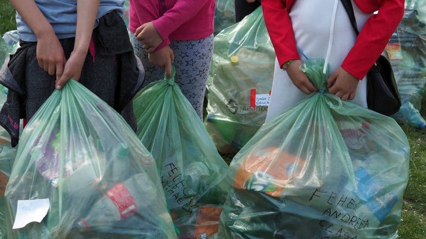 Dacă-i întrebi pe copii cum au făcut rost de plastic, zic așa: „A fost simplu, am găsit peste tot. Am cules din ogradă, de pe uliță, din pârâu, din tău, de la bufet, de pe câmp”.