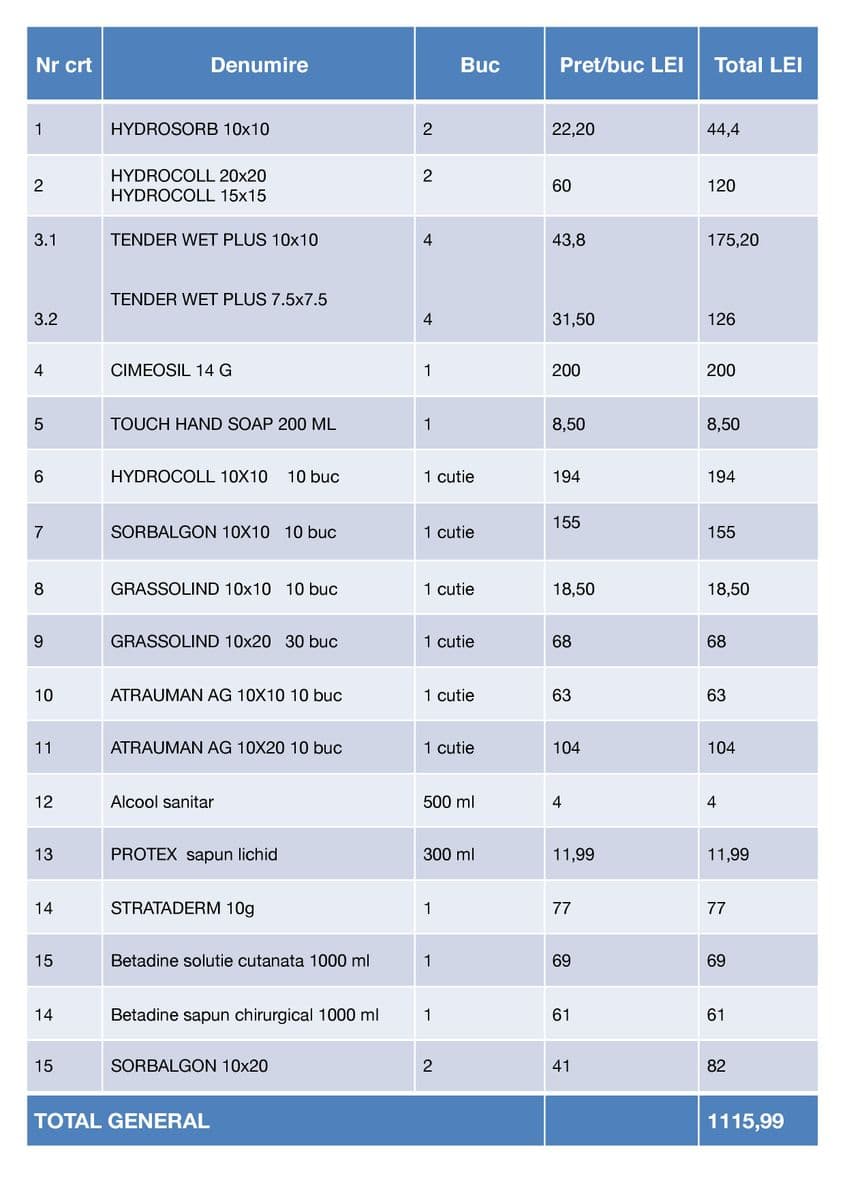 Contabil de profesie, sursa noastră a făcut acasă o listă cu produsele pe care le-a găsit în kit și le-a căutat prețurile pe site-urile farmaciilor. În total, valorau circa 1.200 de lei, nu 2.800, cât declarase oficial Crucea Roșie.