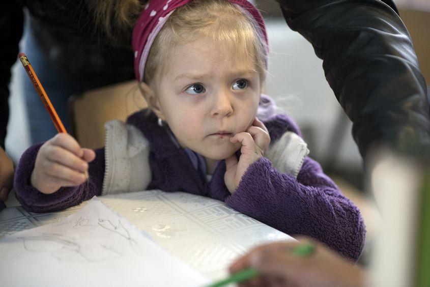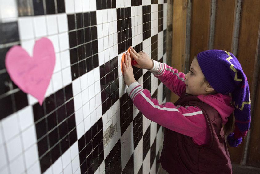 Toți copiii de la preventoriu au primit creioane și carioci, foarfece, plastilină și hârtie colorată. Cei mici zburdă printre picioarele adulților ca niște bosoni, fac inimioare roz, coșulețe cu fructe și alte asemenea.