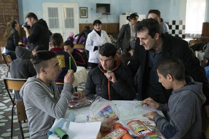 În sala de mese a cantinei e furnicar – profesori, asistente și copii. Se face un team-building cu elevi care au venit de la școala din Căianu Mic pentru „Ziua bună – Ziua voluntarilor mici”, eveniment organizat de Asociația Tășuleasa Social.