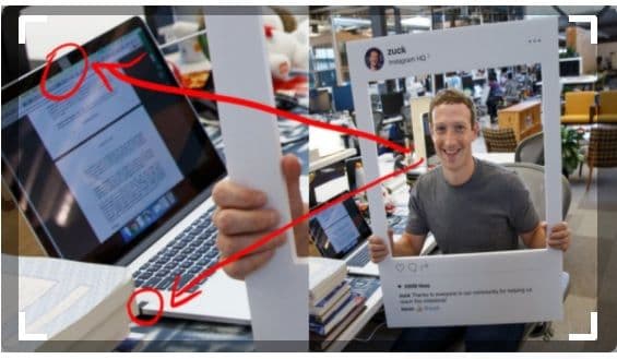Poate vă mai amintiți imaginea de mai jos, care a făcut vâlvă anul trecut: fondatorul Facebook, Mark Zuckerberg, apare alături de un laptop care are o bandă lipită peste „ochiul” camerei video. De asemenea, mufa jack audio este acoperită. Laptopul pare a fi cel folosit de Zuckerberg la birou.