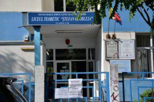 Intrarea în Școala nr. 2 pe peretele căreia pictura murală a costat 12.696 euro. București. Foto: Lucian Muntean