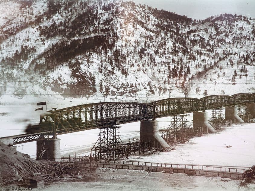Dau de o mică expoziție de fotografii de la începutul secolului XX, cu inaugurarea căii ferate. Printre ele, soborul clasic de preoți și o imagine care îmi place mult, cu un pod iarna și un tren mișcat.