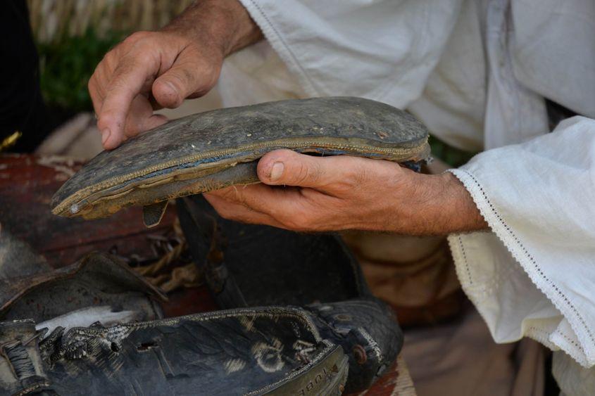 Clienții trec pe lângă tarabă, se minunează la câte-o pălărie sau curea, dar el nu-i mai vede. S-a așezat comod lângă grămada sa de opinci vechi, cărora, de-a lungul anilor, le-a regăsit poveștile uitate.