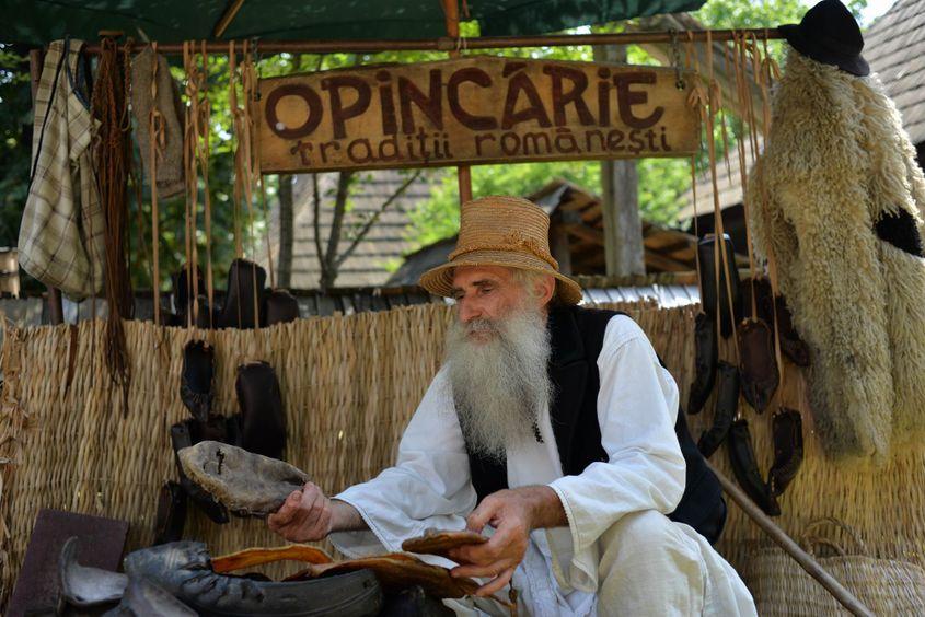 Venit din Orlești-Vâlcea, Alexandru Ilinca se autointitulează ultimul opincar din Oltenia și spune că menirea lui nu e să vândă, ci să ducă povestea mai departe.