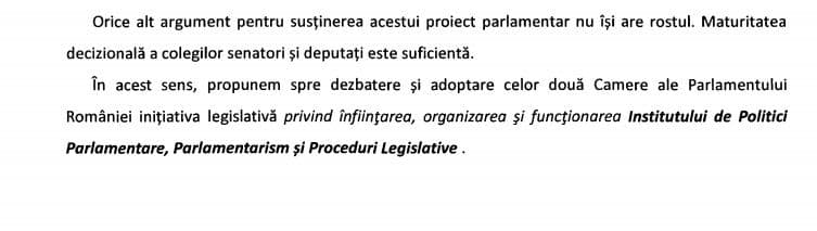 El susține că „suntem printre ultimele țări din Uniunea Europeană care nu are o instituție sau orice alt gen de autoritate cu utilitate publică care să gestioneze politica parlamentară la nivel național din perspectivă academică și științifică”.
