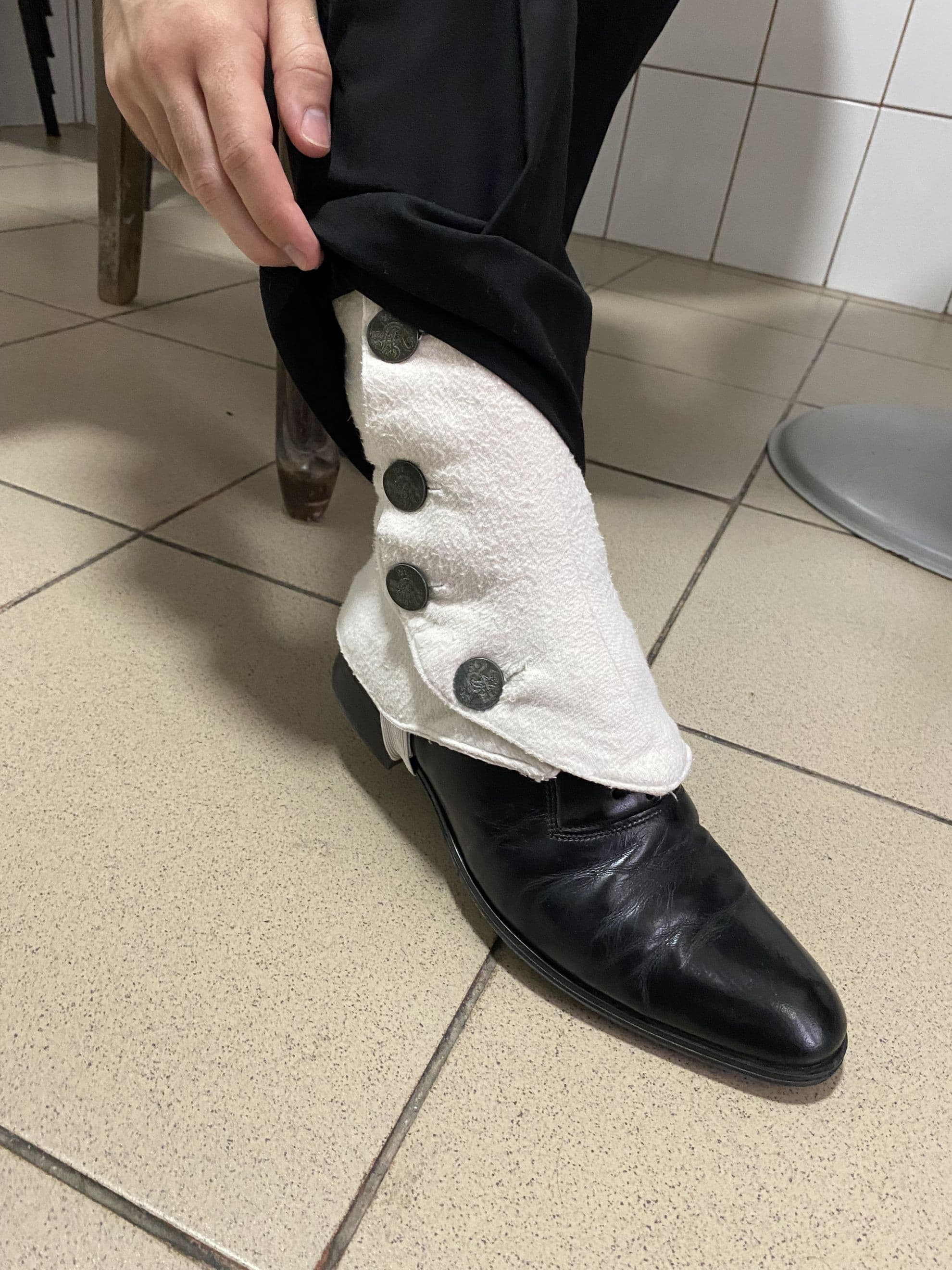 Peste pantofi, studentul poartă o pereche de ghetre din lână albă, adică un accesoriu conceput să țină cald. În secolele trecute, modelul era croit până la genunchi și considerat nepotrivit pentru o ținută elegantă. Era folosit pe sub uniforma militară. Din secolul XX, atașamentul purtat peste gleznă, mult mai scurt și prins cu nasturi într-o parte, devine o piesă elegantă.