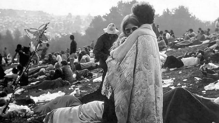 Într-una din cele mai cunoscute fotografii ale evenimentului rămas în istorie drept Woodstock, o fată și un băiat stau îmbrățișați în mijlocul unei mase de spectatori.
