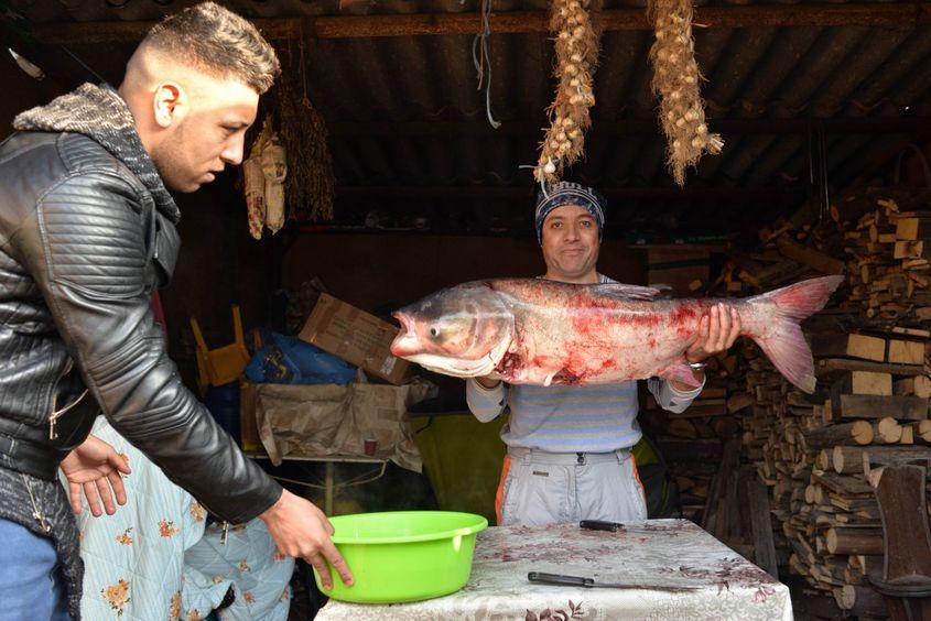 L-a luat de la un băiat care zice că l-a adus din Dunăre. A dat 9 lei pe kilogram și e mulțumit de afacere.