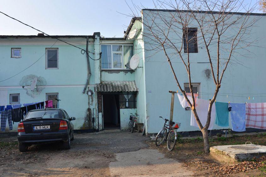 „Nu vă uitați pe aici, că au pus puțin asfalt. Veniți la noi, la blocuri, să vedeți ce-i acolo!”, intervine tatăl celor doi copii, și arată către capătul localității.