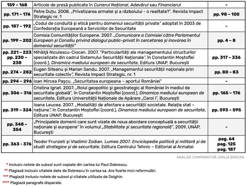 Alte zece pagini din teză au conținutul compilat din mai multe articole de presă publicate în ziarele Curierul Național, Adevărul sau Financiarul.