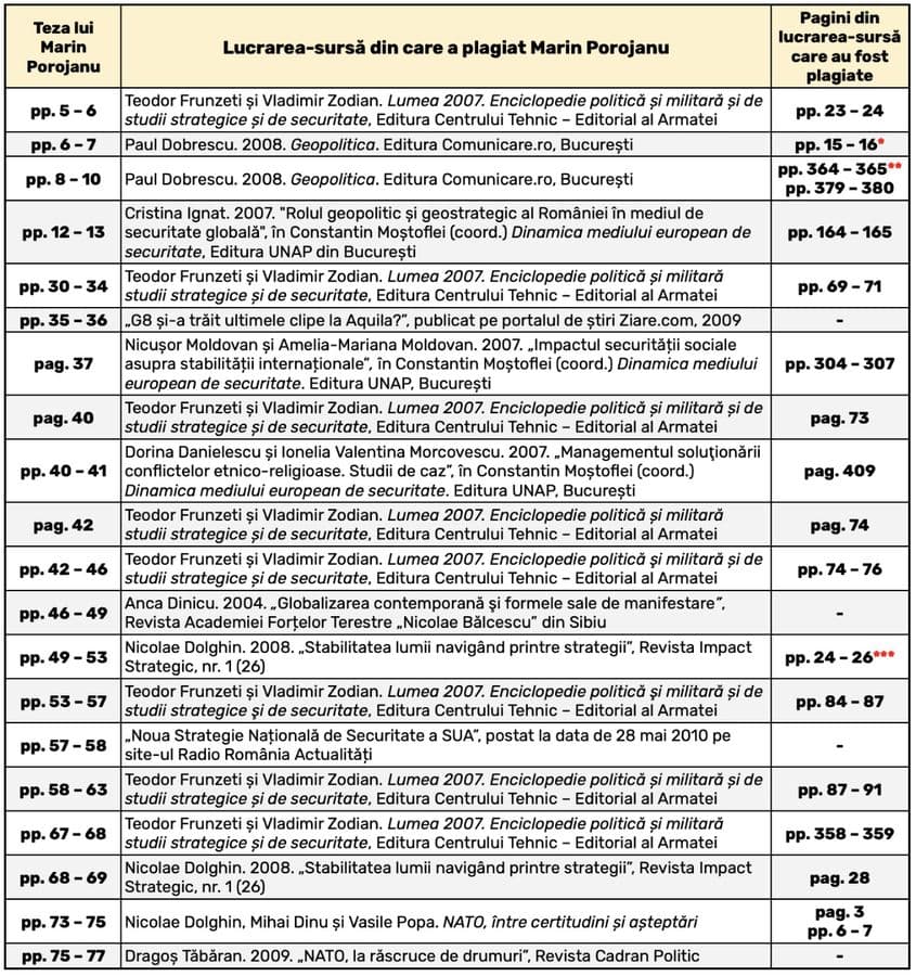 - Mai bine de o jumătate din teza de doctorat a lui Porojanu, sub conducerea căruia sunt pregătiți viitorii jandarmi, este copiată din surse identificate online.