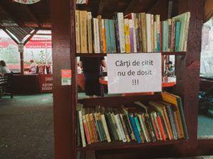 Inima Oborului cu mici: lenjerie intimă agățată pe sârmă, Răpirea din Serai într-un colț și câteva rafturi cu cărți pe care scrie mare Cultură.