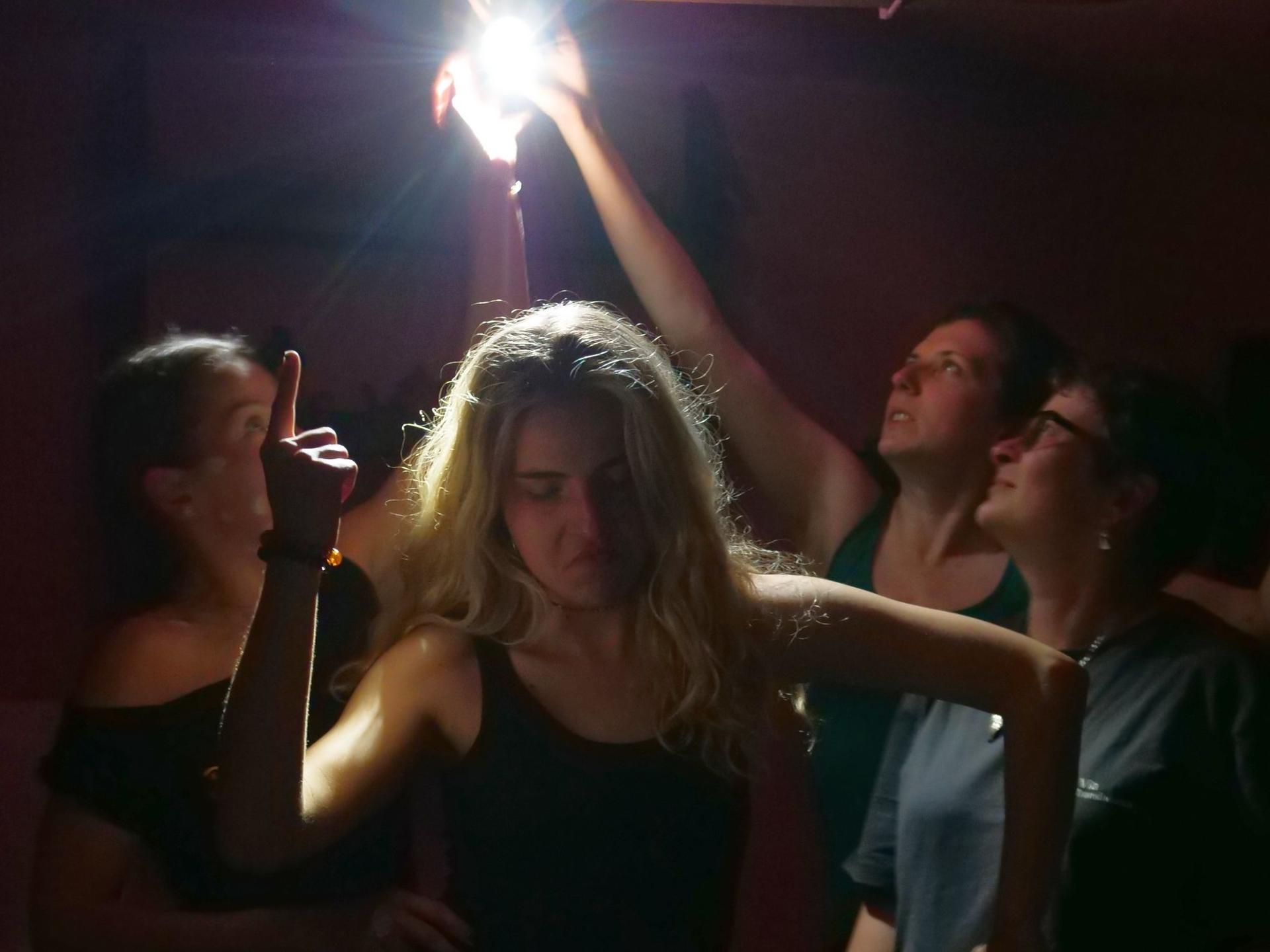 Apoi lui Mircică, inspirat de lumina dramatică, îi vine ideea de a re-crea cu fetele celebra fotografie cu fețele celor patru de pe un album a lui Queen, cu Iulia pe post de Freddie Mercury. Nu prea ne iese, dar ne distram de minune. Puck se uită nedumerit de pe laviță, rupt de somn și nu pricepe mai nimic din tot delirul oamenilor.