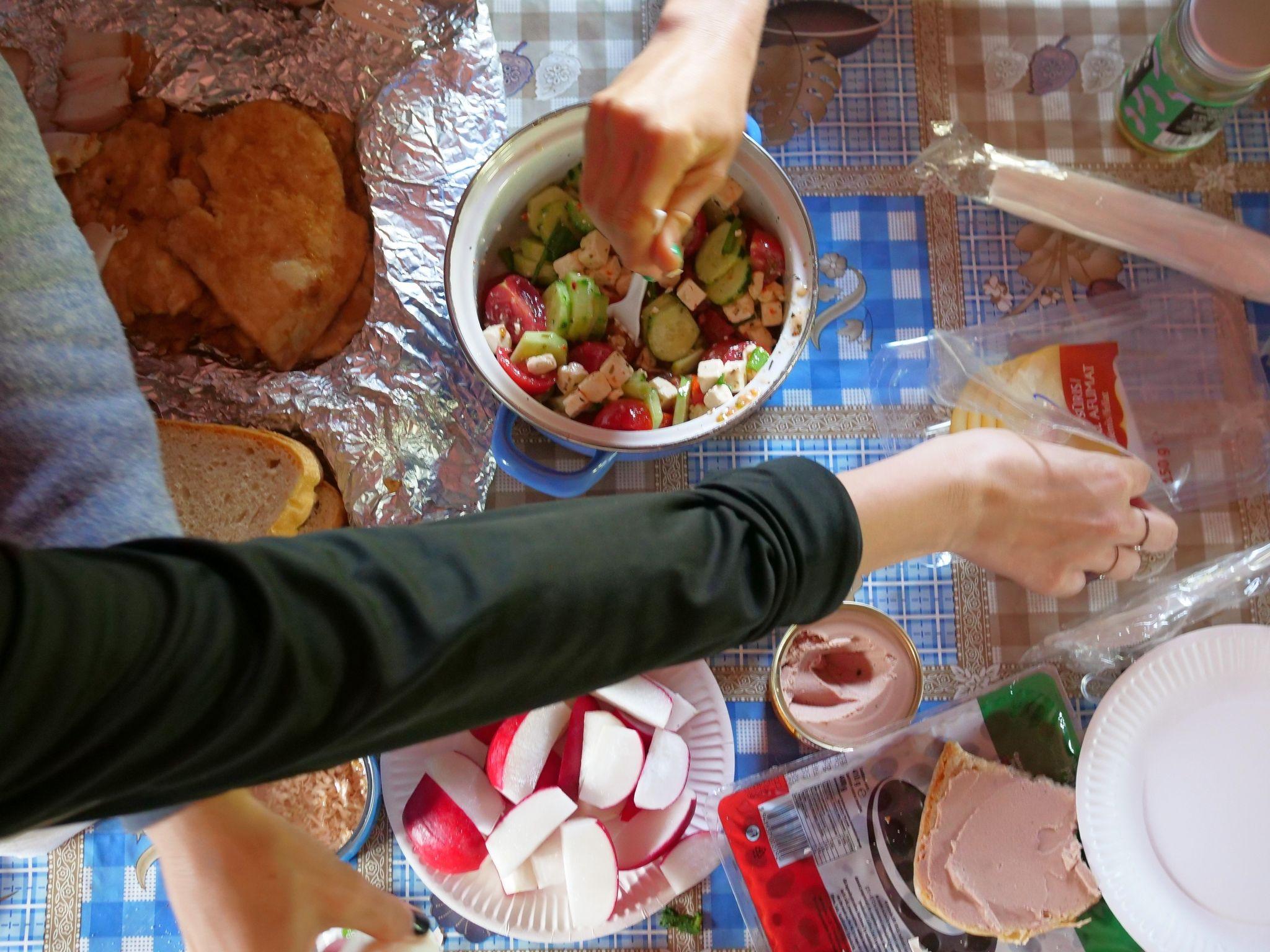 Binevoitorii Anca și Călin au dus mașina deja acolo și cu toții visăm în secret la apa cristalină a unui duș cald. Punem la bătaie toate resturile cinei din care se încropește un mare mic dejun cu pate, ouă fierte, salată și toate bunătățile pământului, care se cuvin mâncate, ca să nu fie cărate în spinare.