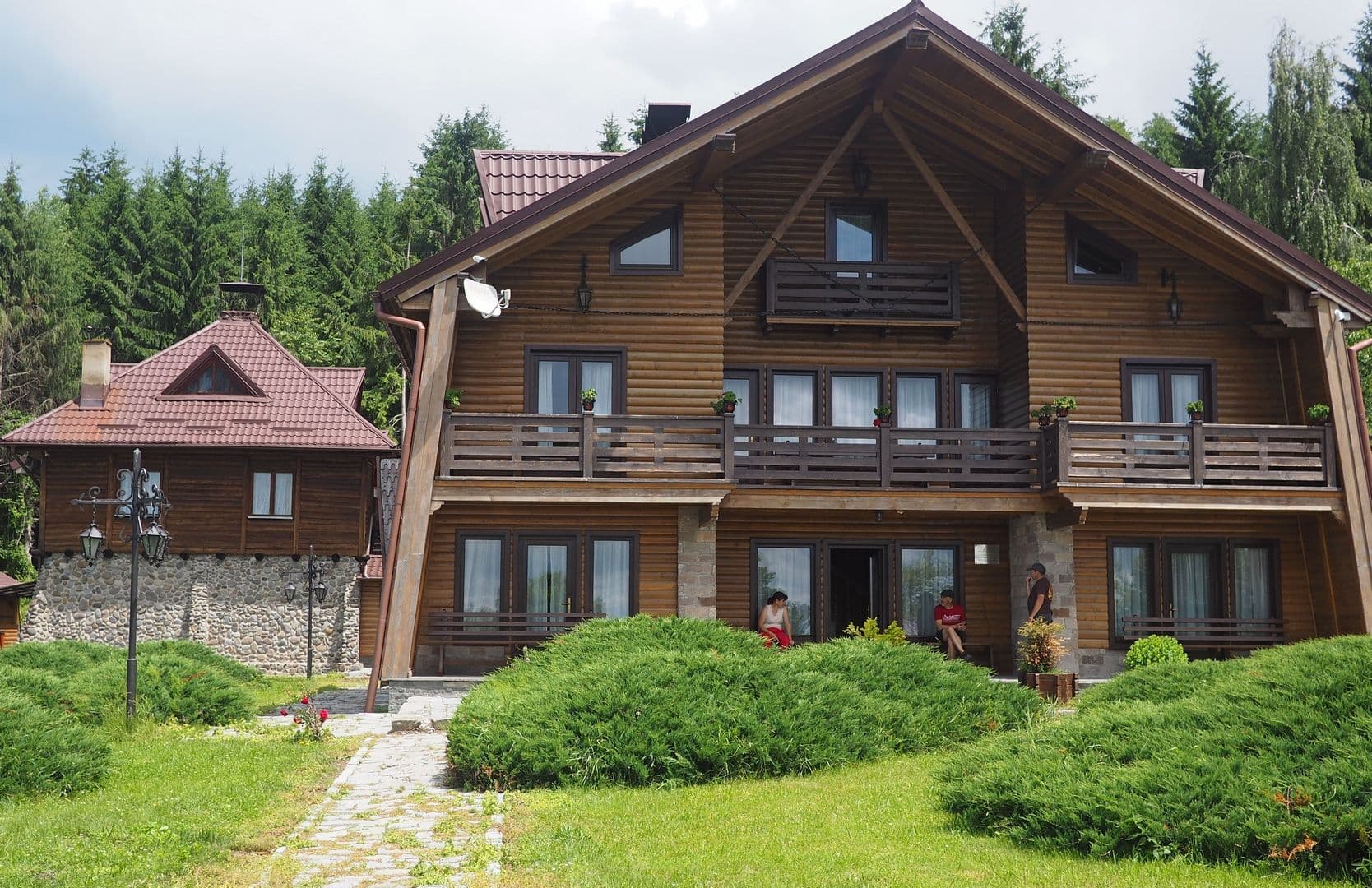 Păstrează câteva elemente originale: felinarele de fontă de pe alei, candelabrele din coarne de cerb, trofeele de urs întinse pe perete și două teracote enorme, care aveau camere speciale de încărcare, prin spate.
