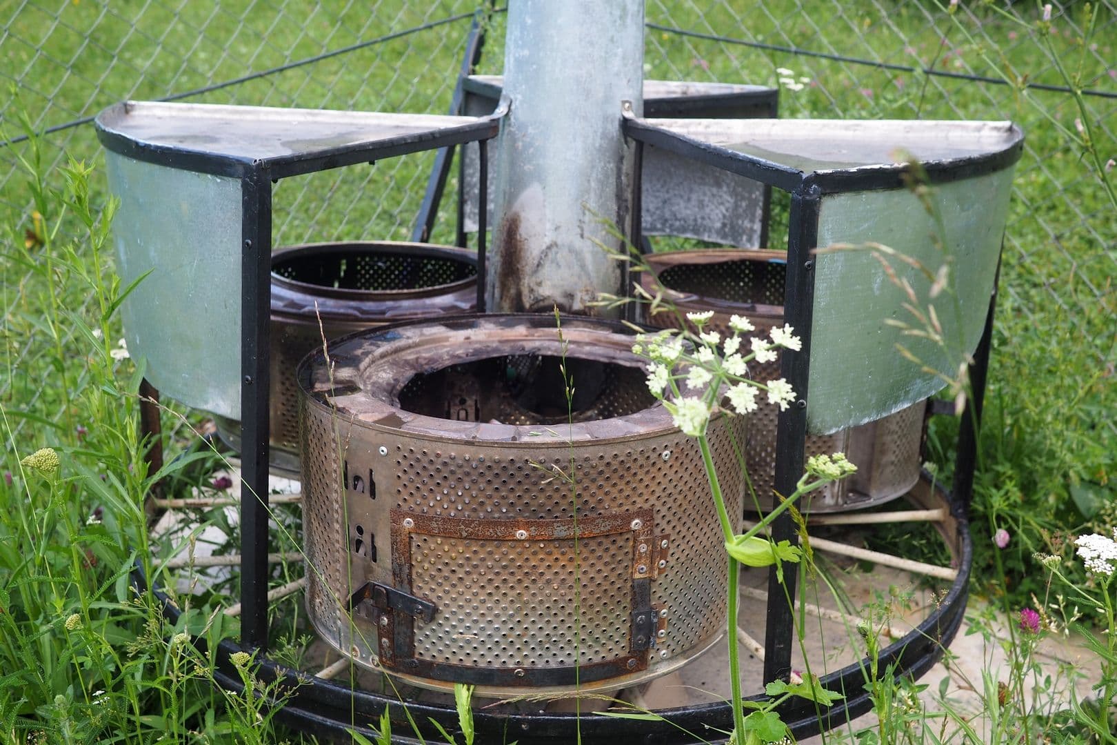 Nu plecăm înainte ca nea Vasile să ne explice ce-i cu ozeneul 'cela de mirare' din ograda lui: un fel de instalație rotitoare, pe clicheți, care reunește trei cuve cu găurele, piese de bază de la niște mașini de spălat stricate.