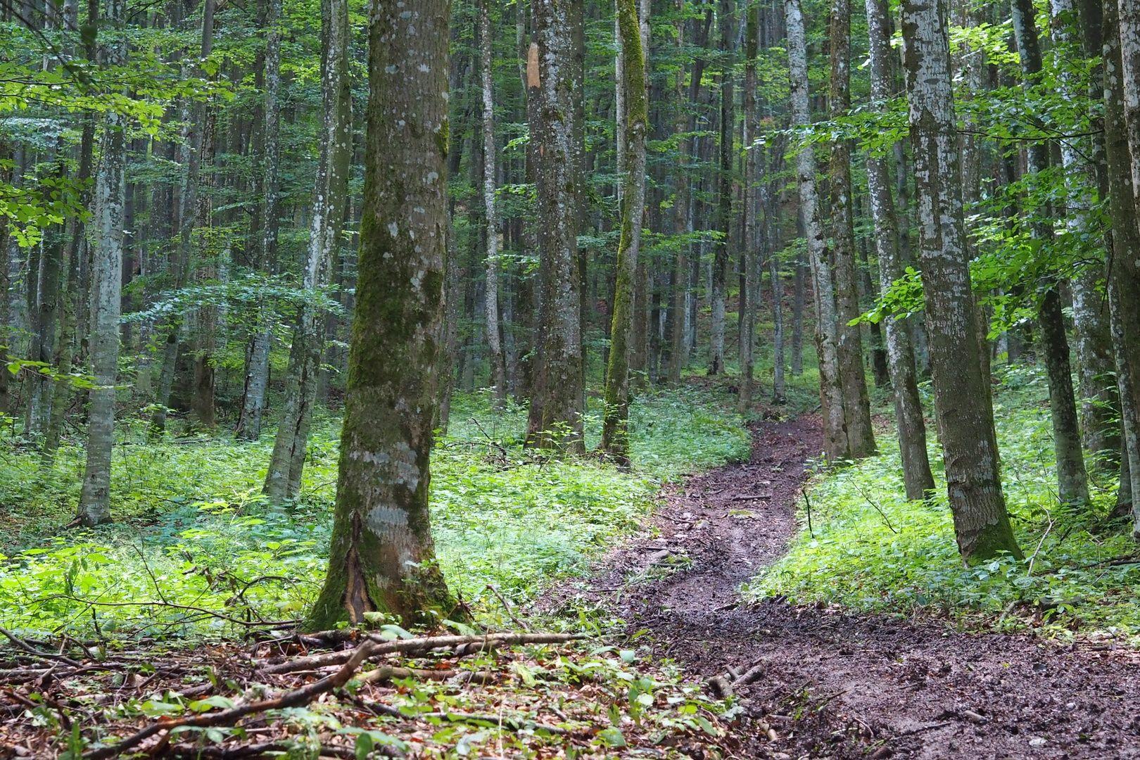 Pădurea prin care trecem e de poveste, cu fagi rari și parfum de pământ și frunze moarte. Chiar, oare de ce nu se fac parfumuri cu miros de pădure?